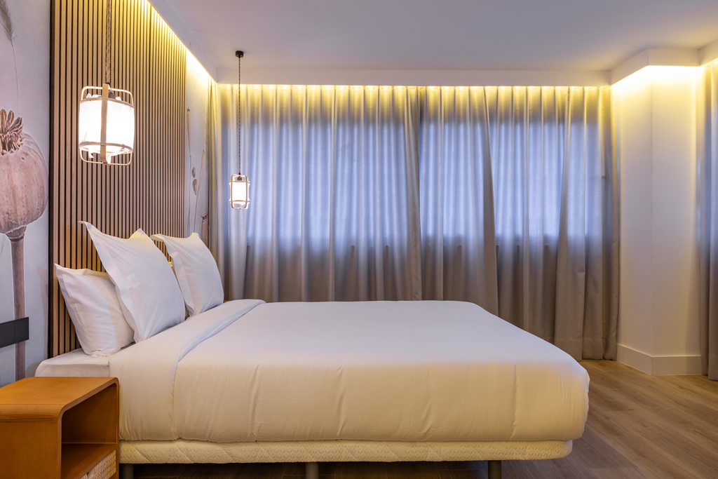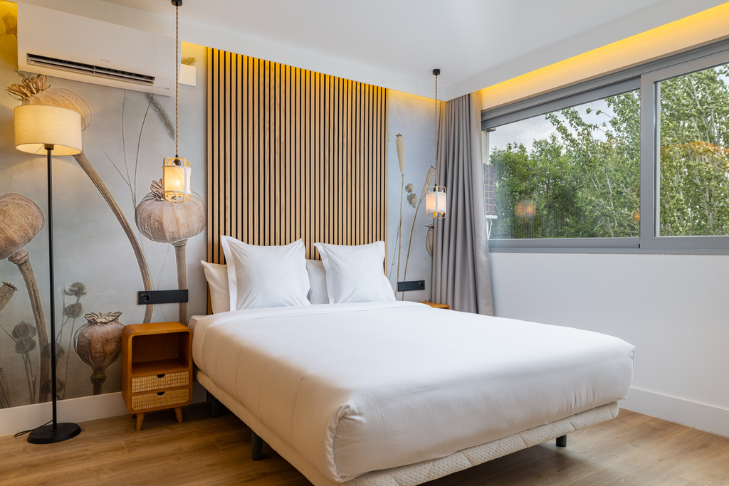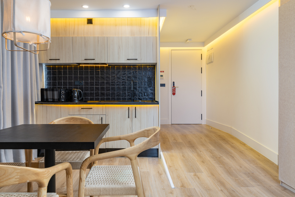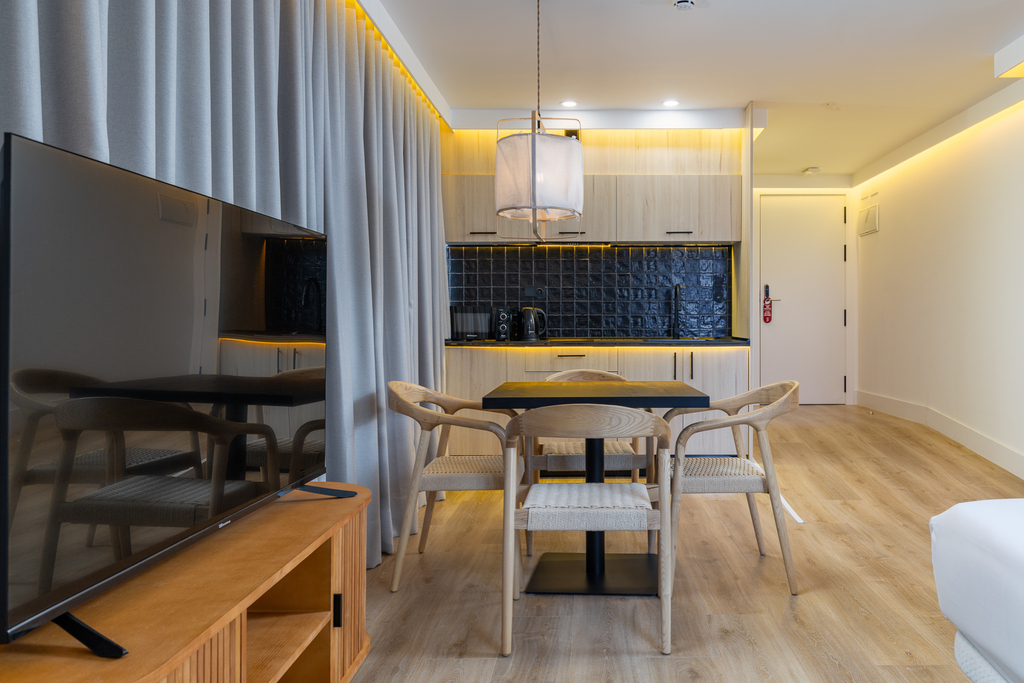 La suite estándar es un espacio diáfano diseñado para ofrecer comodidad y practicidad. Se unen tres áreas en un espacio con cocina que cubre las necesidades del viajero; zona de estar acogedora para relajarse o recibir visitas que sirve de salón durante el día y como zona de descanso por la noche. El dormitorio con cama de matrimonio garantiza un descanso reparador. Baño de diseño totalmente equipado. En general, estas suites son ideales para estancias prolongadas, ya que brindan la flexibilidad de tener un espacio para relajarse y desconectar.